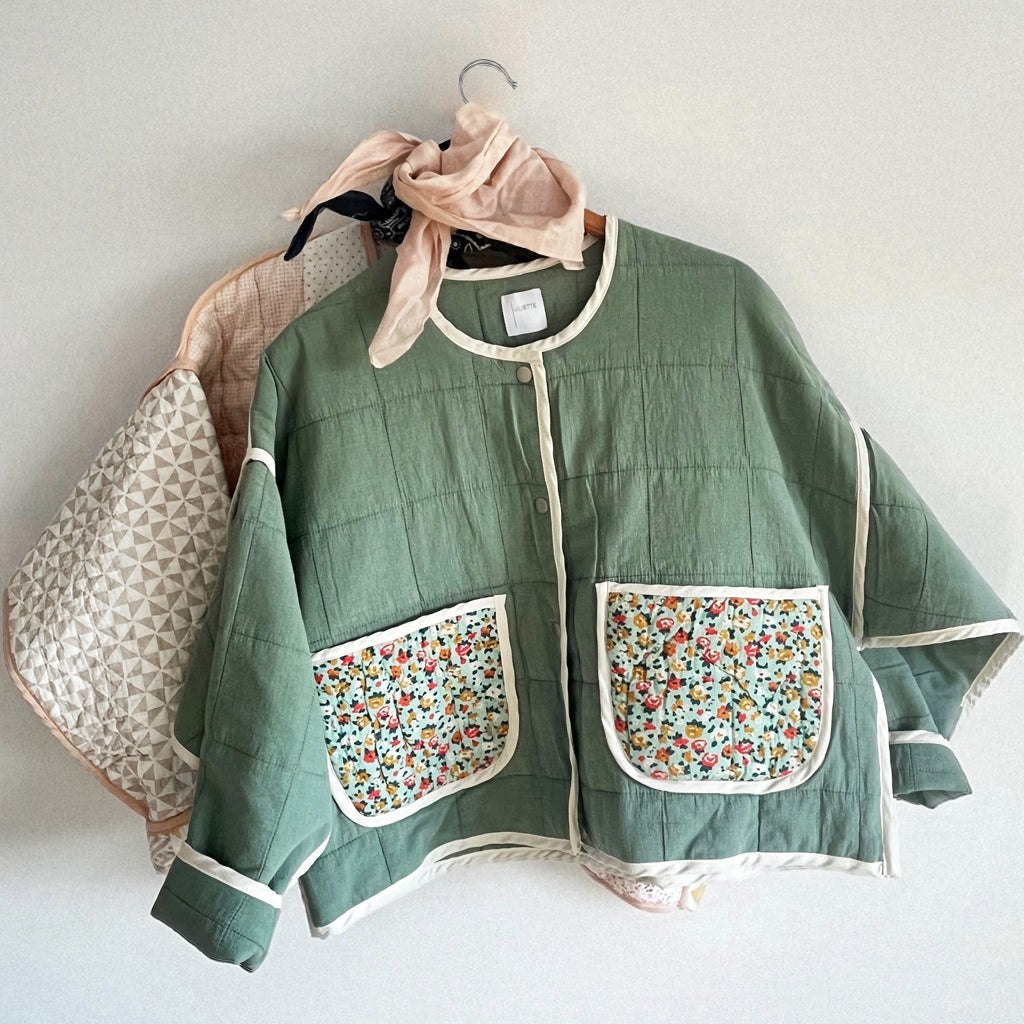 Every quilted jacket in our collection is truly one-of-a-kind. We believe that each person's uniqueness deserves to be matched with equally distinctive clothing. By carefully sourcing end-of-series and vintage quilted blankets, we transform these exceptional textiles into remarkable jackets. We thoughtfully combine colors and patterns to create stunning pieces that make a bold statement, ensuring you'll stand out wherever you go.