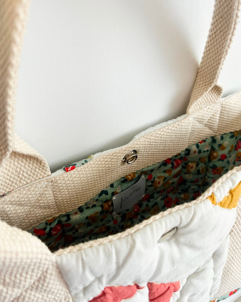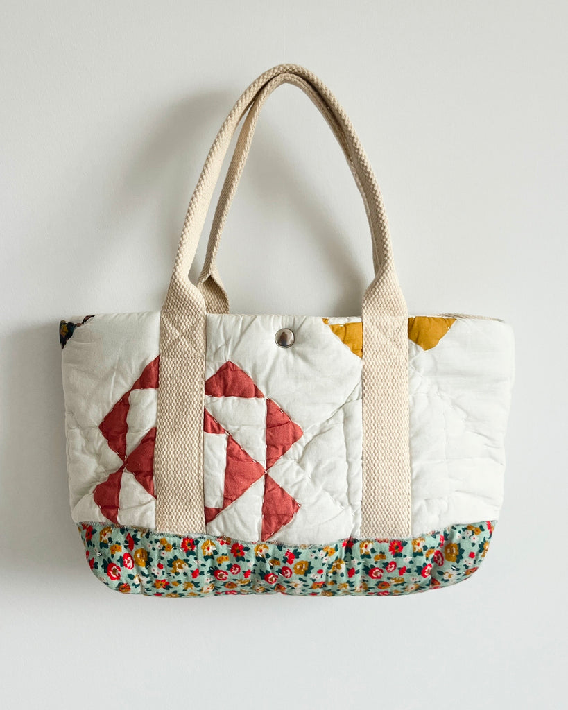 Every LEFTLOVER Bag carries a unique story, thoughtfully crafted from premium remnant fabrics of our quilted jackets. Made with natural fibers, these bags transform what would typically become waste into functional art. Care is refreshingly simple: gentle spot cleaning is recommended for day-to-day maintenance, while an occasional hand wash in cool water will preserve its vibrant character. After washing, reshape gently and allow to air dry flat—NEVER TUMBLE DRY. With each use, your bag will develop a beautiful patina, enhancing its one-of-a-kind charm and making it an ever-evolving, cherished companion for years to come. As sustainable as it is stylish, your Leftlover Bag celebrates the beauty of conscious craftsmanship.​​​​​​​​​​​​​​​​